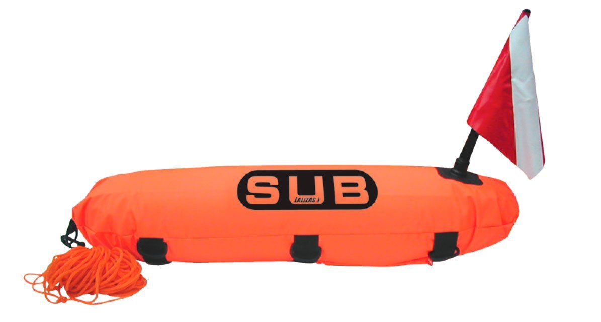 Boyas Marcadoras de Superficie (DSMBs) - Similares a los tubos de señalización hinchables, se fijan a un cabo y un carrete y se despliegan bajo el agua o en la superficie.