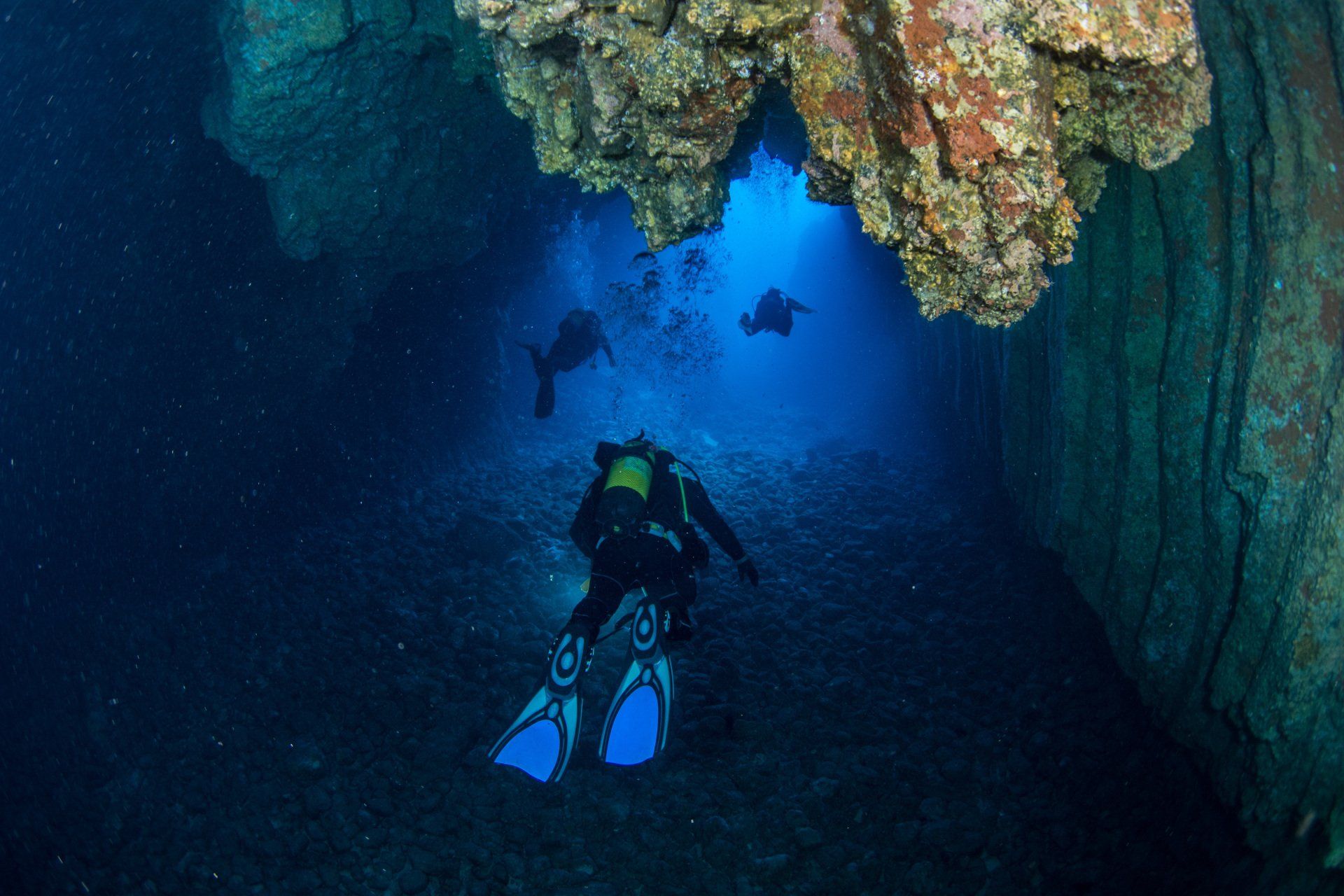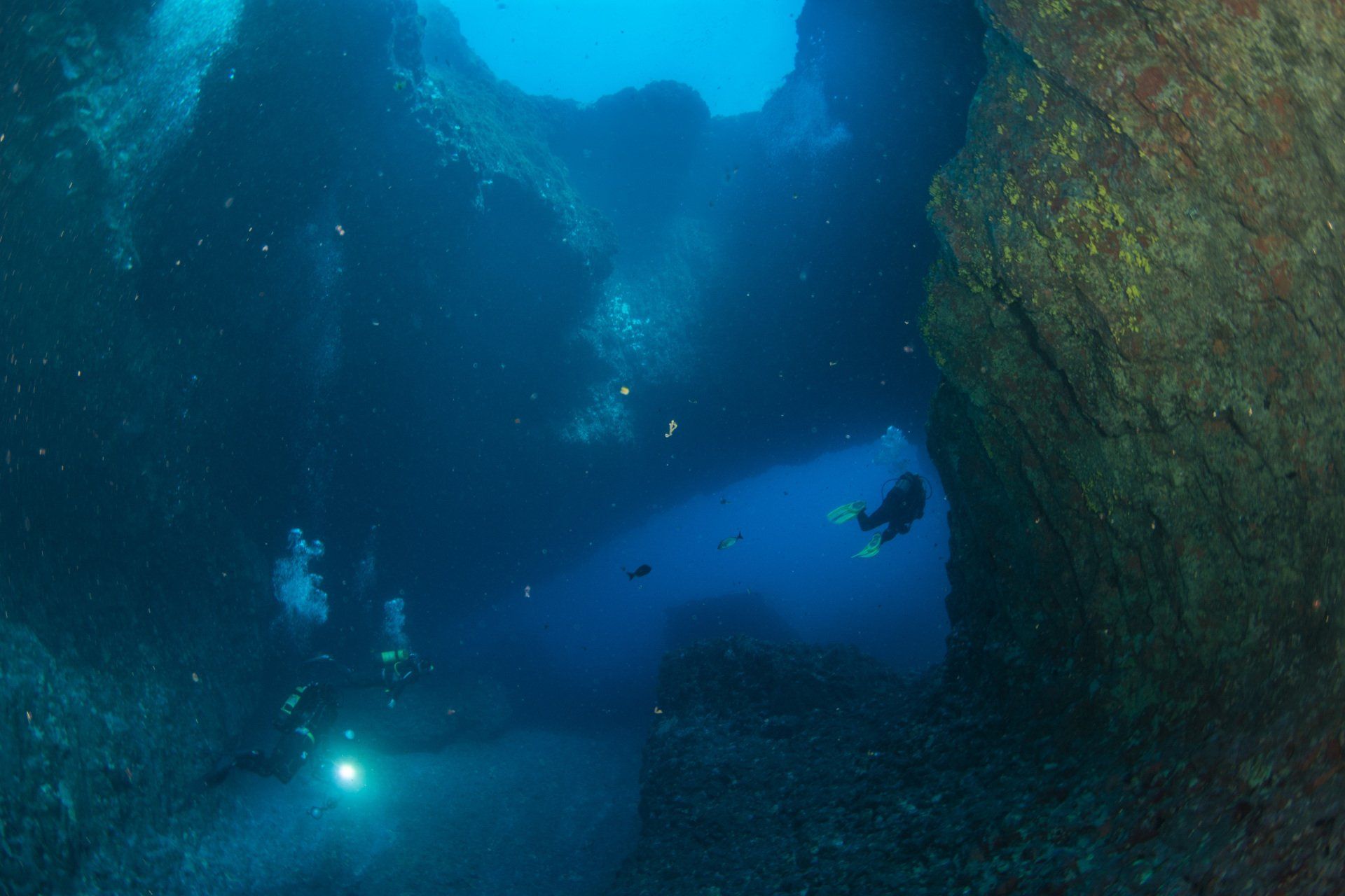 La inmersión debe estar bien planificada: se debe elegir una de las múltiples rutas disponibles, conviene llevar focos o linternas y se han de considerar las condiciones de corriente y oleaje. Los fotógrafos submarinos disfrutarán buscando la mejor combinación de haces de luz y sombras entre las cuevas. Para los expertos que alcancen el fondo a 40 metros de profundidad, la visión del edificio volcánico que se abrirá ante ellos será monumental.