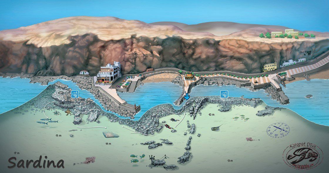 medre-gales, angelotes, chuchos, mantelinas, burritos listados, roncadores, jureles, herreras, anguilas jardineras, anémonas gigantes y un largo etc., son los habitantes casi cotidianos de los fondos de Sardina. Rebuscar entre sus diferentes veriles especies como el pez esponja, se convierte en un divertido juego. Y, siempre alerta, las bicudas y bogas ofrecen, en ocasiones, un entretenimiento digno de ver.
