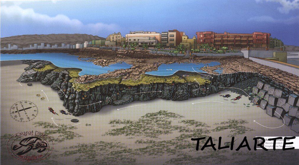 Entre la bocana del muelle de Taliarte y la playa de Melenara, se encuentra una interesante zona rocosa que forma un pequeño veril, cuya parte superior está cubierta por una densa pradera de algas pardas. Esto convierte la zona en criadero de un gran número de especies, como salemas, viejas, romeros, pejeverdes, etc.